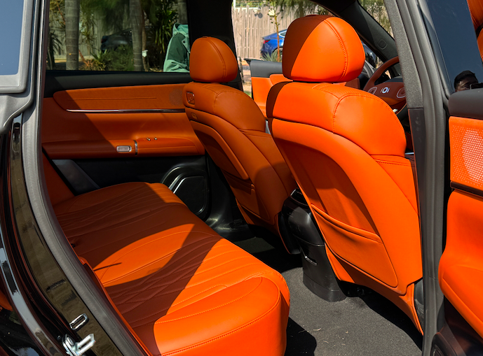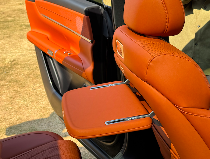 座椅方面,新车的前排座椅支持电动调节、加热/通风/按摩等功能,副驾还配备了带电动腿托的“零重力”座椅,进一步提升了乘坐的舒适性。同时,后排还可选装折叠小桌板,为乘客提供了更加便捷的使用体验。