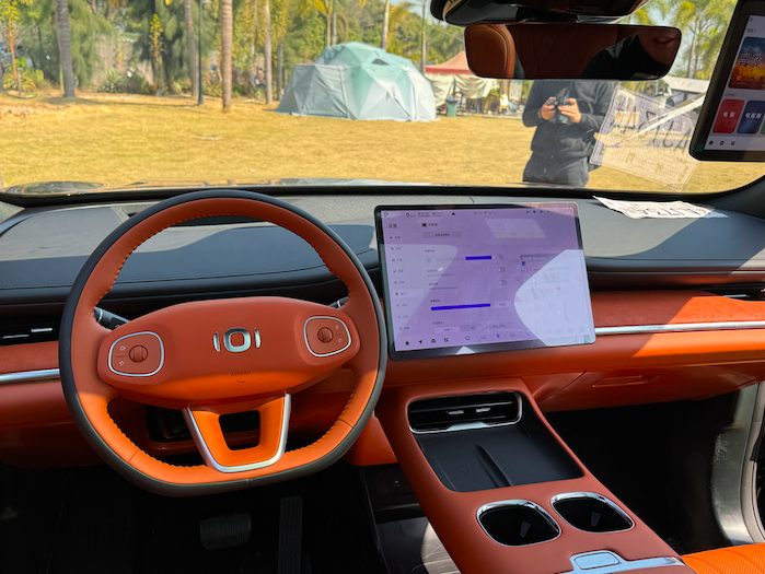 进入车内,新车采用了极简设计理念,环抱式的座舱用不同材质和颜色的饰板进行点缀,凸显豪华气息的同时也不失层次感。悬浮式的中控屏、大尺寸的AR-HUD抬头显示以及门板上方的电子门把手等配置,让新车的科技氛围一次拉满。